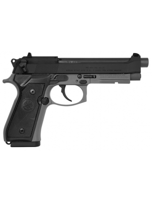 A Sniper Gray colored version of the 92FS in 22LR with the addition of an accessories rail.