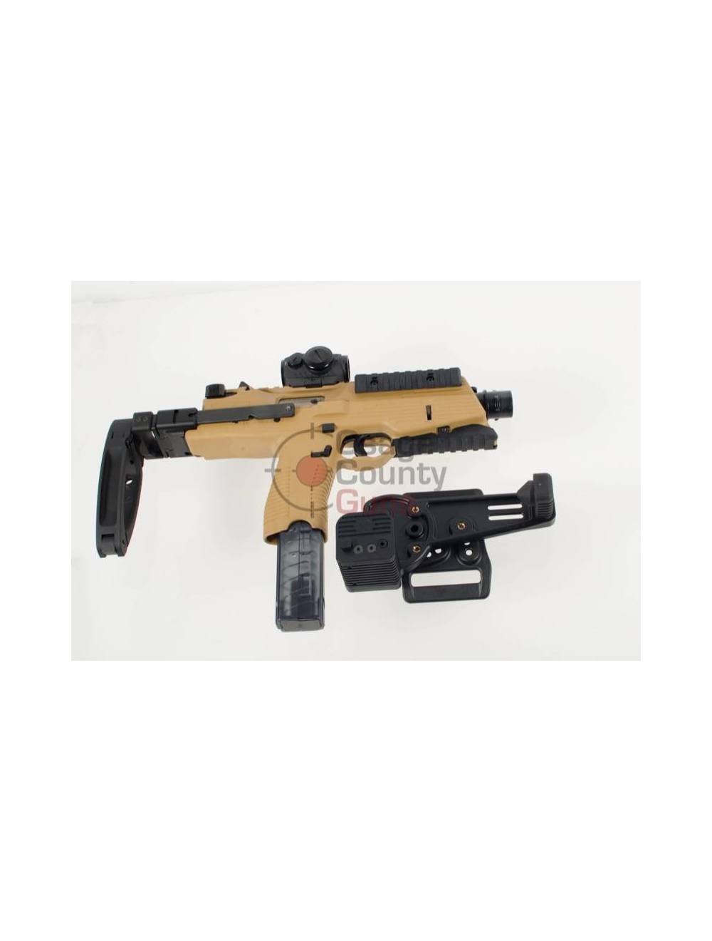 B&T TP9 Tan – 5.1″ 9mm w/ Holster, Brace, & Red Dot Sight