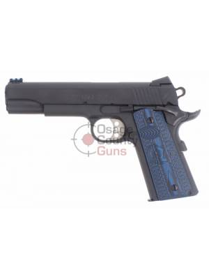 The Colt Competition Pistol™ is a race-ready full size Government Model® built with the competitor in mind. Featuring our Dual Spring Recoil System™, Novak’s new adjustable rear sight and fiber optic front sight, acquiring and staying on target is easy. The pistol also features competition ergonomics including an undercut trigger guard and upswept beavertail, allowing shooters a higher grip for enhanced comfort and accuracy. Custom blue Colt G10 stocks and the legendary National Match® barrel complete the package. The Colt Competition Pistol™ is available in .45 ACP and 9mm.
