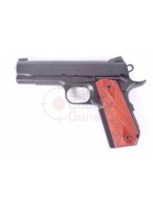Features 4.25″ Commander model slide, single stack commander Bobtail® frame. The John Browning traditional design innovatively modified for concealed carry, without significantly detracting from reliability or accuracy. Weight: approximately 35 ounces with an unloaded magazine inserted. Exclusive 25 LPI checkering on forestrap and Bobtail®. Fixed dovetail 3-dot night sights with high visibility white outlines.
