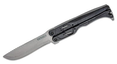 Gerber DoubleDown Folding Machete 6.75″ 420HC Stonewashed Recurve Blade Black Handles QuadLock Features: The American-made DoubleDown Folding Machete is an outdoor tool that delivers never-before-seen function with an innovative design. Folding up to half its size, the DoubleDown can easily stow in a pack, on a belt, or attached to MOLLE gear. The unique design allows the user three distinct functions in one compact package: chop, cut, and baton. A patent-pending QuadLock system engages in three positions to ensure safe operation under varying levels of stress. Gerber DoubleDown Folding Machete 6.75″ 420HC Stonewashed Recurve Blade Black Handles QuadLock Specifications: 420HC recurve blade QuadLock locking system Two handling positions Baton jimping Stability bar Overstrike guard MOLLE or belt-carry sheath Blade Length: 6.75″ Overall Length: 15.1″ Blade Material: 420HC Stainless Steel Blade Style: Recurve Drop Point Blade Finish: Stonewash Handle Color: Black Locking Mechanism: QuadLock Weight: 18 oz. Made in the USA