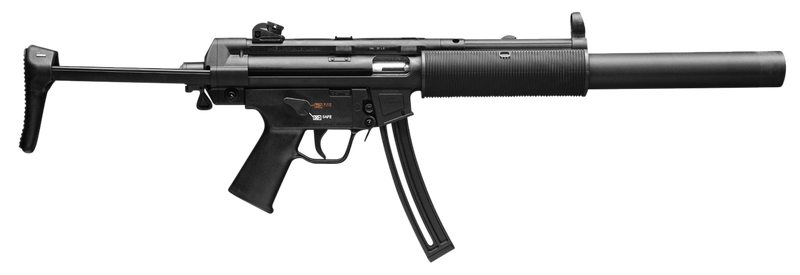 H&K MP5 Features You can get the authentic look, feel and features of the legendary HK MP5 in a semi-automatic .22 LR pistol. HK has partnered with Umarex of Germany to bring you the only HK-authorized rimfire versions of the legendary MP5. So, whether you’re looking for an economic, but serious sub-caliber trainer, a suppressor host, or just want the coolest .22 LR fun gun on the range, look no further. H&K MP5 Specifications Brand: HK Category: Rimfire Rifles Caliber: 22 LR Model: MP5 Stock Finish Group: Black Capacity: 25+1 Action: Semi-Auto OAL: 26.40″- 32.30″ Hand: Right Barrel Finish: Black Muzzle: Faux Suppressor Gun Platform: MP5-Style Magazine Type: OEM Grips: Black Polymer Safety: Safety Selector Switch Stock Description: Retractable Barrel Length: 16.10″ Max Capacity: 25 Receiver Finish: Black Trigger: Single-Stage Weight: 7 lbs Stock Finish: Black