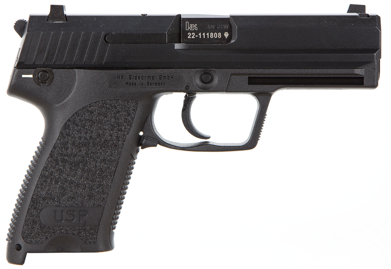 H&K USPÂ V1 Features All HK USPs feature a fiber-reinforced polymer frame stiffened by stainless steel inserts at areas subject to stress and friction. The HK USP V1 control lever, a combination safety and decocking lever, is frame mounted and quickly accessible, unlike the slide-mounted safeties common on many semi-automatic pistols. Using a modified Browning-type action with a special patented recoil reduction system, the USP V1 recoil reduction system reduces recoil effects on pistol components and also lowers the recoil forces felt by the shooter. This same recoil reduction system has been tested and proven in the HK Mark 23 pistol developed for the U.S. Special Operations Command. The USP recoil reduction system is insensitive to ammunition types and requires no special adjustment or maintenance. It functions effectively in all USP models. The Variant 1 has a double action/single action with “SAFE” position. The control lever (manual safety/decoking lever) on left side of frame. H&K USPÂ V1 Specifications Brand: HK Category: Pistols Series: V1 Caliber: 40 S&W Model: USP Capacity: 13+1 Action: DA / SA Frame Finish: Black OAL: 7.68″ Frame Material: Polymer Hand: Right Sight Style: Contrast Slide Finish: Black Slide Material: Steel Slide Description: Serrated Black Steel Magazine Type: OEM Grips: Black Polymer Sight Configuration: 3-Dot Includes: 2 Magazines Safety: Decocker / Manual Barrel Description: 4.25″ Polygonal Rifled Barrel Length: 4.25″ Max Capacity: 13 Weight: 29.10 oz Frame Description: Black Polymer with Serrated Trigger Guard