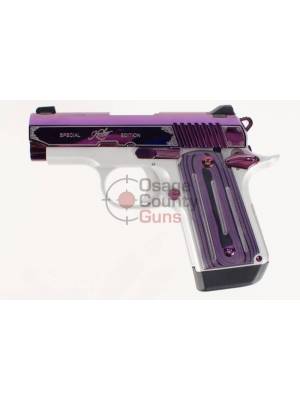 A stunning pistol with a number of performance-enhancing features, the Micro 9 Amethyst wears a brilliant bright purple PVD finish and intricately engraved scroll accents.