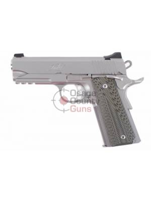 A shorter stainless steel version of the pistol carried by LAPD® SWAT with an integral Kimber Tactical Rail™