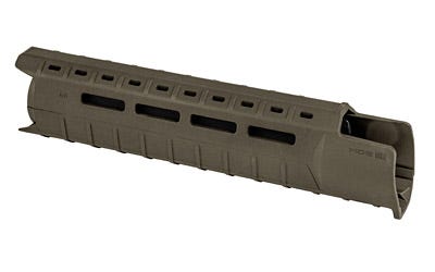 MAGPUL MOE SL AR15/M4 MID-LENGTH HANDGUARD •Narrow design replaces factory 2-piece mid-length plastic hand guards •Easy to install utilizing existing delta ring & round front hand guard retaining cap w/A2 front sight assembly •Slots at the two six and ten o’clock positions for mounting direct-attach M-LOK accessories or M-LOK 1913 Picatinny rail sections •Reinforced heat-resistant polymer construction •Integral riveted aluminum heat shield •Front lip & long side extensions shields hand from hot sight assembly •Weight: 8.3 oz. •Length maximum: 10.9” •Width maximum: 1.8” •Height: 2.4” •Olive Drab Green