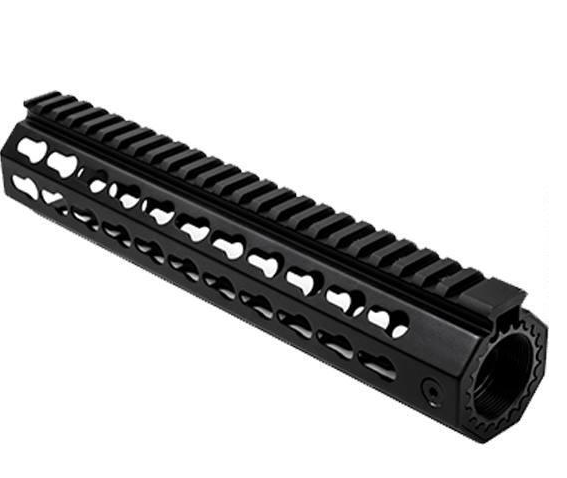 NcStar 10″ AR15 Keymod Handguard Features & Specifications: NcSTAR AR15 Free Float KeyMod Handguard VMARFFKMC AR15/M4 10″ Handguard Free Float DI Gas System White T Markings Continuous Top Rail Aluminum Construction Anodized Black 10″ Long Weight 8.8 Ounces Includes: One Standard Size Barrel NutÂ