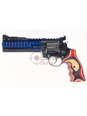 Following the success and overwhelmingly positive market reception of the Super Sport, Korth designed and developed the Super Sport ALX. This model is 12 ounces lighter than the Super Sport STX and weighs in at 2.91 lbs. The Super Sport ALX features the same world-class firing mechanism as the STX, utilizing a roller bearing trigger system and fully machined components throughout the revolver. The weight savings is achieved through the use of aluminum in the barrel shroud that has been anodized blue to create a very unique and eye-catching gun. The grips of the ALX have also been lightened by switching to an attractive laminated wood that allows for lightening cuts inside of the grip panels and the Hal Swigget Grip Profile. Like the Super Sport STX, the ALX features a front sight that can be pre-set at four different heights for quick aiming and ease of switching between distances in competition. The ALX also maintains the Lothar Walther cold-forged barrel featuring polygonal rifling. Finally, like other Korth Revolvers, the ALX is available with an optional fitted and tuned 9mm cylinder that allows the shooter to switch between .357 Magnum/.38 Special to an alternate 9mm cylinder without any tools in a matter of seconds. Specifications: