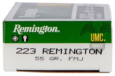 Remington UMC .223 Ammo Features For varmint hunting, target shooting, training exercises or any other high-volume shooting situation, UMC centerfire rifle ammunition offers great value with absolutely no compromise in quality or performance. Loaded right here in the USA, UMC rifle ammunition offers the choice of either metal-case or jacketed hollow point bullets in several popular rifle calibers. Remington UMC .223 Ammo Specifications Brand: Remington Ammunition Category: Centerfire Rifle Rounds Caliber: 223 Rem Model: UMC Bullet Weight: 55 gr Rounds Per Box: 20 Casing Material: Brass Application: Varmint,Target,Training Boxes Per Case: 10 Bullet Type: Full Metal Jacket (FMJ) Muzzle Energy: 1282 ft lbs Muzzle Velocity: 3240 fps
