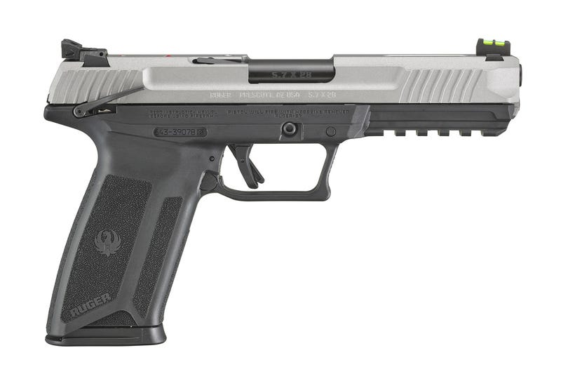 Ruger-57 Silver 5.7x28mm 4.9″ Barrel 20-Rounds Ambidextrous Safety