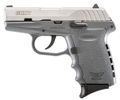 SCCY CPX-2 Pistol Features SCCY’s CPX-2 is designed for concealed carry but large enough to get a good firm grip. It is considered to be one of the best priced, precision made “Pocket Pistols” on the market. Chambered for 9mm, it has a 3.1″ barrel with a 16:1″ right hand twist. The receiver is made from 7075 T6 aircraft grade heat treated aluminum alloy. The Zytel polymer frame features ergonomic finger grooves and an integral recoil cushion on the backstrap. The slide is machined from stainless steel with a Zytel overmolded polymer extension for ease of operation. It has 3-dot sights with a windage-adjustable rear. This DAO has an internal hammer with inertial firing pin to prevent accidental discharge. It has a smooth, consistent 9-pound trigger pull. It comes with two 10-round magazines with finger extensions bases installed and two flat magazine bases. This CPX-2 has a satin frame with a gray frame. SCCY CPX-2 Pistol Specifications Brand: SCCY Industries Category: Pistols Caliber: 9mm Luger Model: CPX-2 Frame Finish: Gray Action: DAO Slide Description: Stainless Steel Capacity: 10+1 Frame Material: Polymer Grips: Gray Polymer OAL: 6″ Safety: No Manual Sight Configuration: 3 Dot Sight Style: Contrast Weight: 15 oz Barrel Length: 3.10″