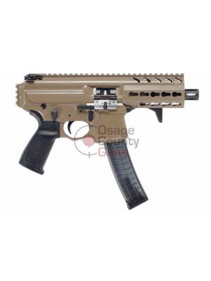 Unconventional design, unmatched performance, and familiar AR handling. The SIG MPX redefines the submachine gun category with a new level of operator safety, in-field adaptability and proven reliability in the harshest environments. Completely ambidextrous, the SIG MPX is great for left- or right-handed shooters with its dual-sided selector switch, magazine release, charging handle and bolt release. The SIG MPX operates from a fully-closed and locked rotating bolt, offering enhanced reliability and safety in use. A short-stroke gas piston allows the SIG MPX to run all weights and brands of 9mm ammunition with no adjustments to the gas valve. A full-length picatinny rail allows for solid, consistent mounting of optics and targeting lasers. The MPX K features a 4.5″ barrel and a short aluminum KeyMod handguard with handstop.
