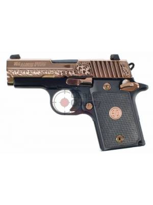 Featuring a unique Rose Gold engraved, polished slide and controls, this P938 comes with custom G-10 grips complimented by a Rose Gold medallion in the center. Just slightly larger than its .380ACP counterpart, this P938 is a single-action 9mm capable of using either a 6-round standard magazine or a 7-round extended version. Perfect for concealed carry or display, the P938 Rose Gold is the perfect combination of elegance and utility.
