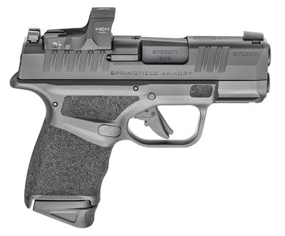The Springfield Armory Hellcat pistol raises the bar on concealed carry pistols with service pistol comfort, capacity and accuracy in a remarkably compact chassis. Chambered in 9mm, the Hellcat features a 3 inch barrel, Hex WASP red dot optic, tritium front sight, one 11 round magazine and one 13 round magazine. Get the best deal on a 9mm Hellcat pistol online from GrabAGun today!