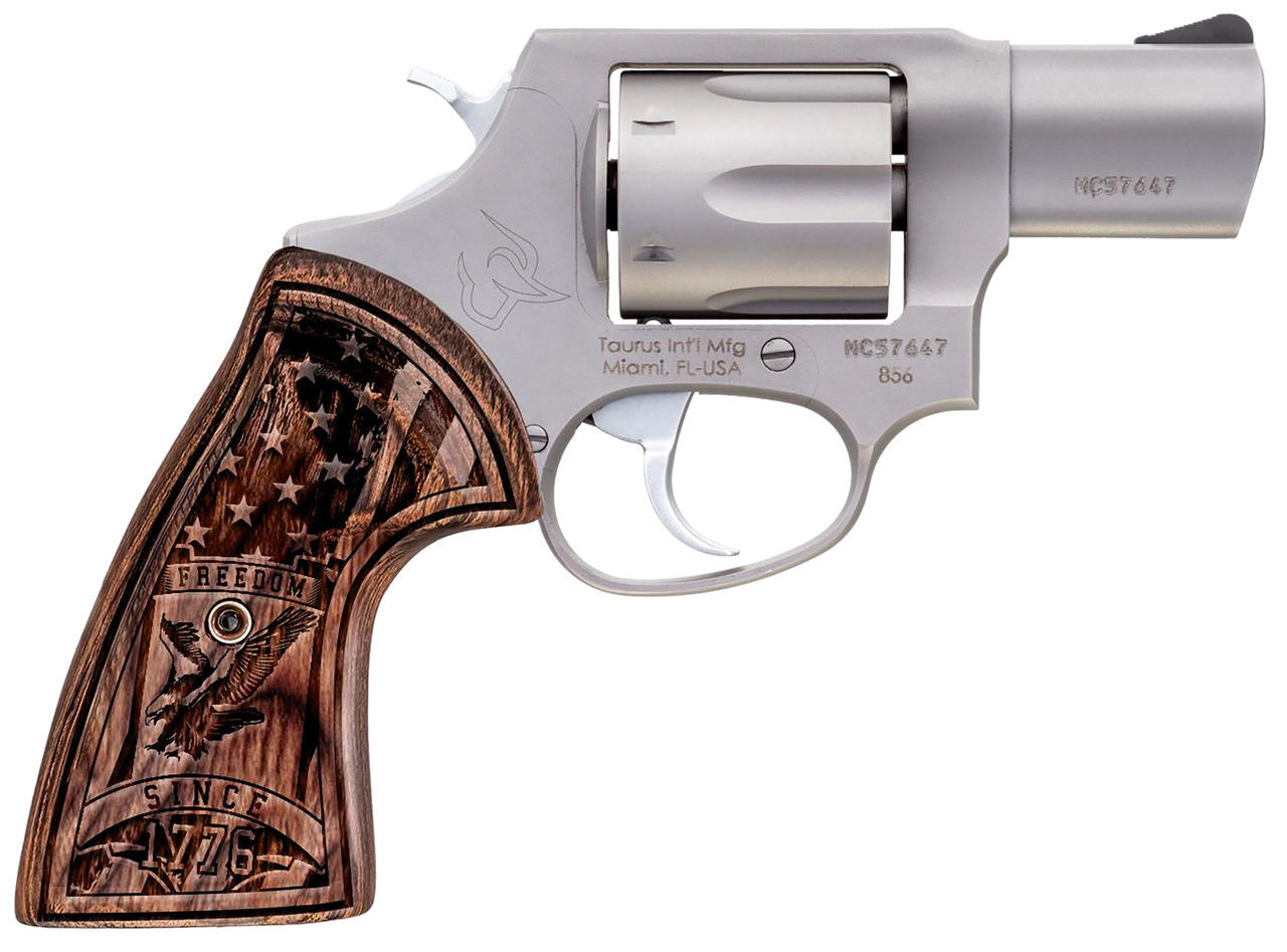 Taurus 605 357 Magnum/38 Special +P, 2″ Barrel, Stainless Steel, USA Flag Walnut Grip, 5rd