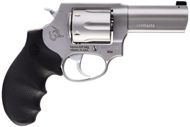 Taurus 856 Defender Features Lightweight. Easy to conceal. Exceptionally reliable. The Taurus Defender 856 is finely tuned to deliver the ultimate peace of mind for home and personal defense situations. This Defender 856 comes with night sights and special Hogue Rubber grips. Taurus 856 Defender Specifications Manufacturer: Taurus Model: 856 Defender Caliber: 38 Spl + P Model: 856 Action: Single Action / Double Action Frame Size: Small Sights: Night Capacity: 6 Cylinder Finish: Matte Stainless Frame Description: Matte Stainless Steel Grips: Black Hogue Rubber Hammer Style: Exposed Overall Length: 7.50″ Weight: 35 oz Barrel Finish: Matte Stainless Barrel Length: 3″